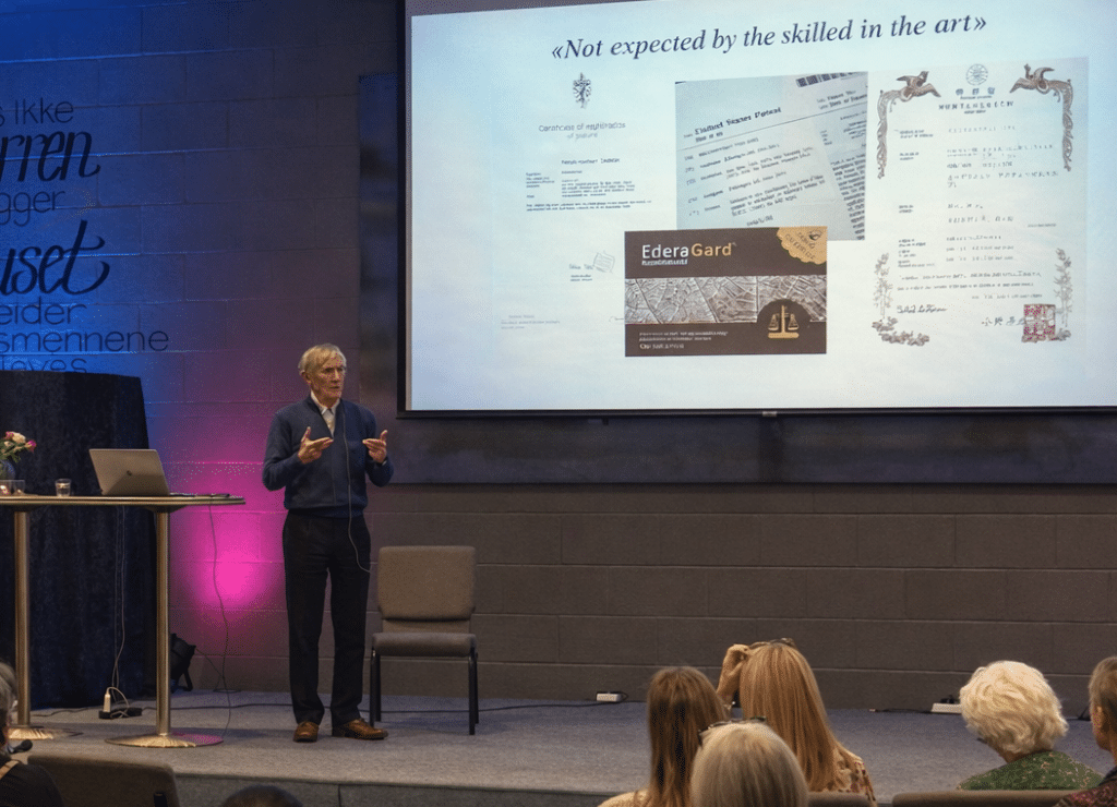 Etter om lag tre kvarter og utover i foredraget forteller Jan Raa om da han og hans medarbeidere for noen år siden utviklet «kunstig jord», en oppfinnelse så epokegjørende at den nå er patentert i Norge, Japan, USA og Canada. Som våre kunder vet, er EderaGard det første produktet som kom ut av denne oppfinnelsen.